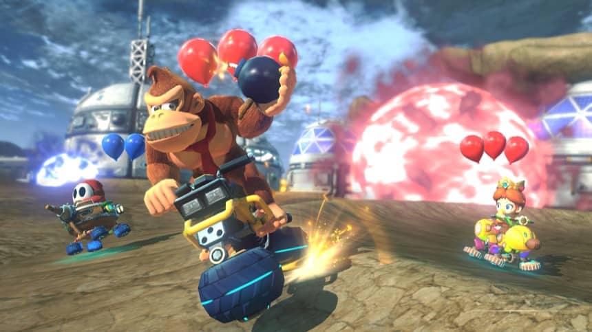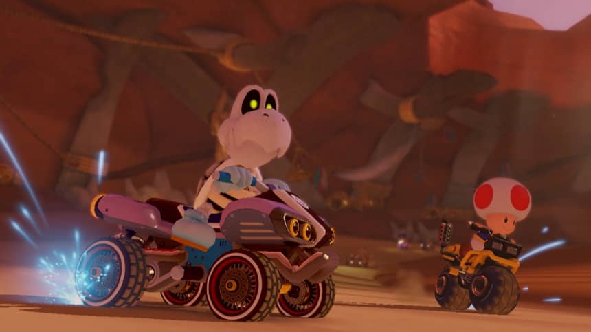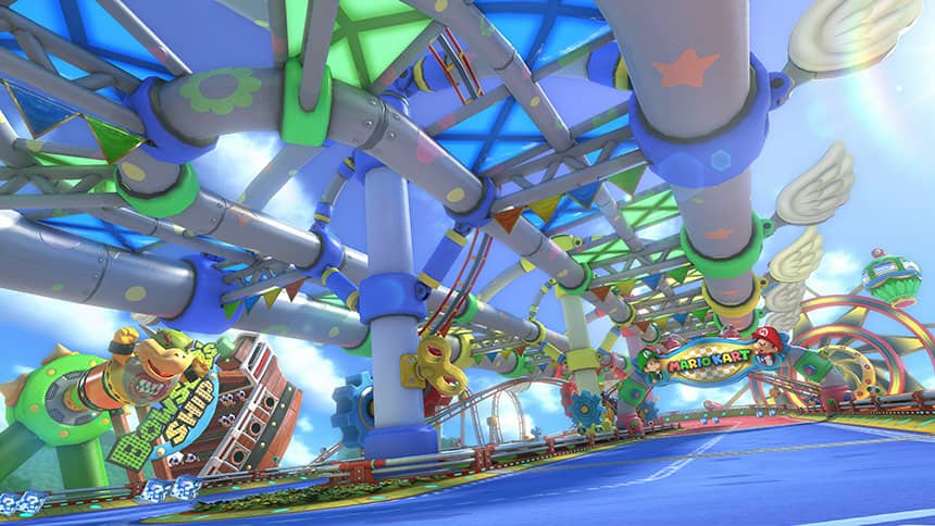 Add a total of 48 more courses and 8 additional characters to the Mario Kart 8 Deluxe game as paid DLC.*